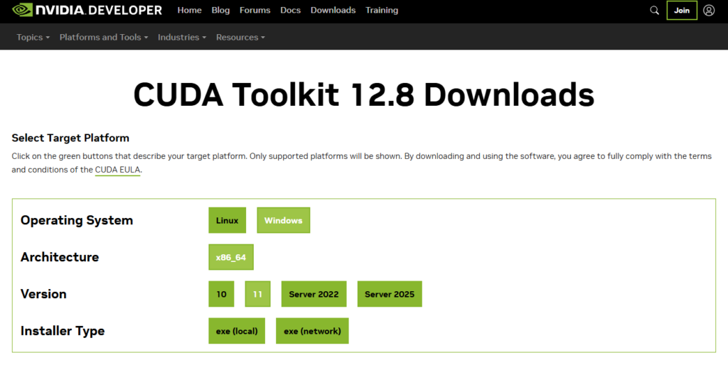 If your GPU supports 12.8 or newer, install NVIDIA CUDA 12.8.
