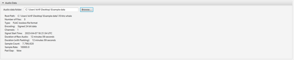 Choose the folder where your audio data are located. Information about the selected data is shown below for reference.