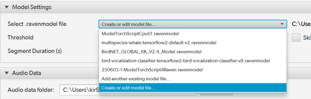 .ravenmodel files can be shared between team members, so not everyone has to do the configuration procedure. The .ravenmodel for BirdNET 2.4 is already included with your install!