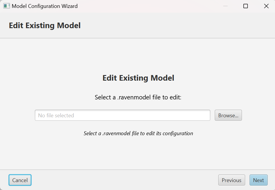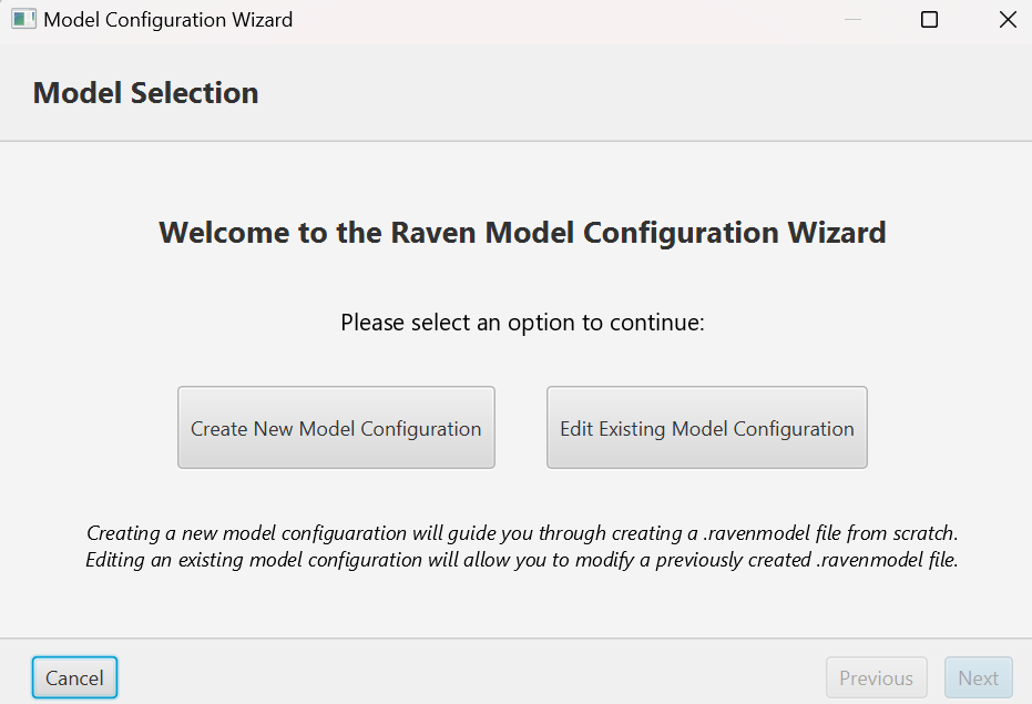 Start by choosing whether you want to create a new .ravenmodel file or edit an existing one.