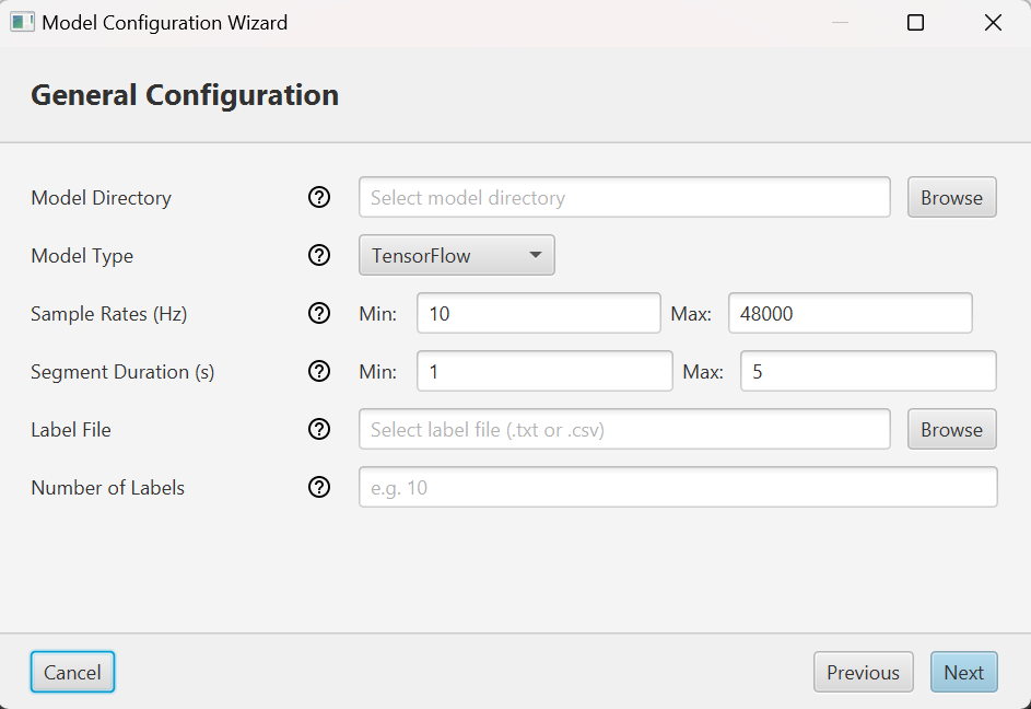 The Model Configuration Wizard is a guided interface designed to assist users in configuring Raven Intelligence to work with various detection models. This should only need to be done once for each new model. The output of the wizard is a .ravenmodel file containing the configuration information, which you can share with other users.